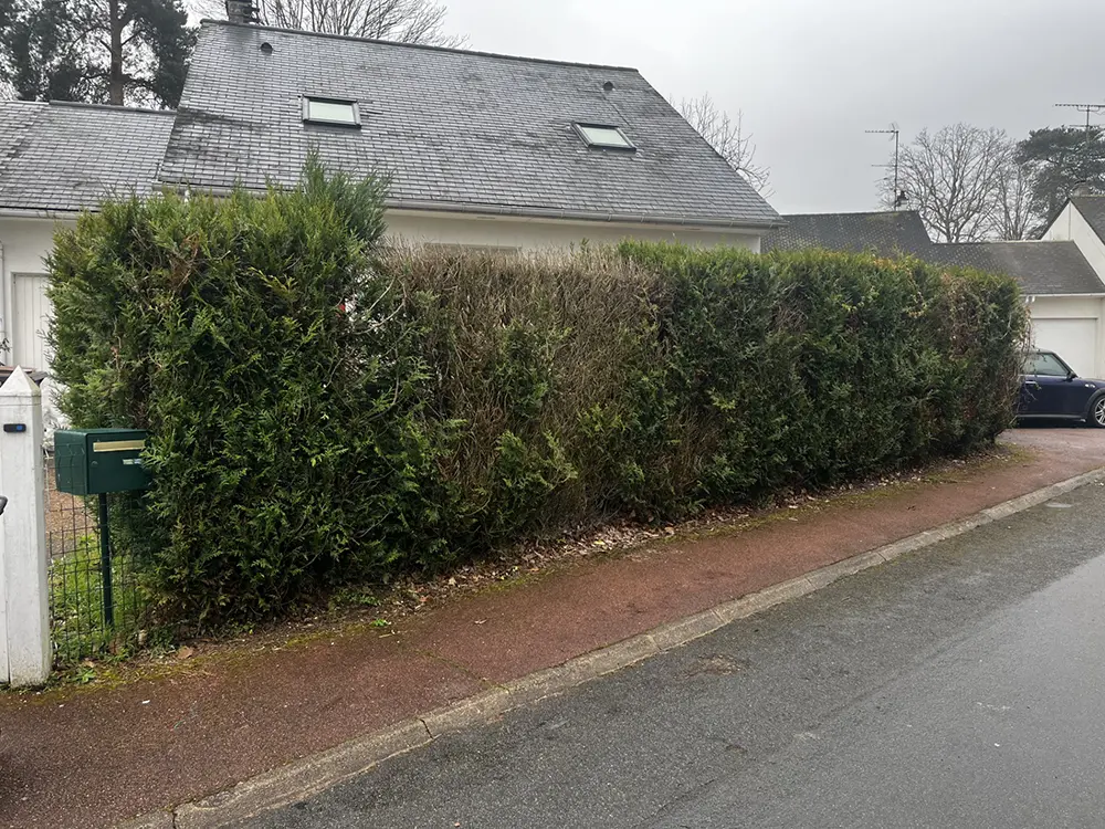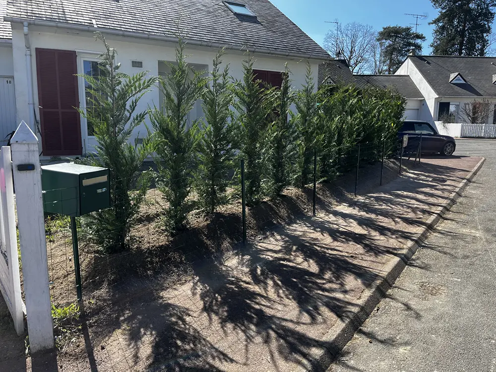 Notre entreprise Le Jardin de Chris est intervenue à Verneuil-sur-Seine (78480) pour un aménagement extérieur complet comprenant le déracinement d’une haie de thuyas, la plantation de cyprès, la pose d’une clôture rigide et le nettoyage de la terrasse.