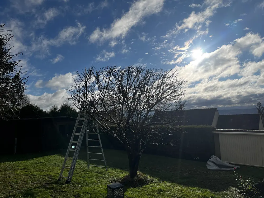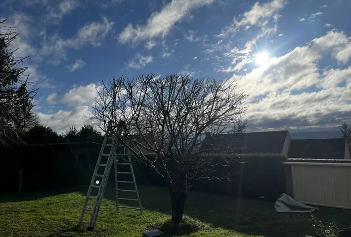 L’entreprise Le Jardin de Chris est intervenue à Mézy-sur-Seine (78250) pour réaliser l’élagage d’un cerisier et d’un prunus dans un jardin résidentiel. Cette opération a permis de sécuriser la zone, de redonner une belle forme aux arbres et de favoriser leur bonne santé.