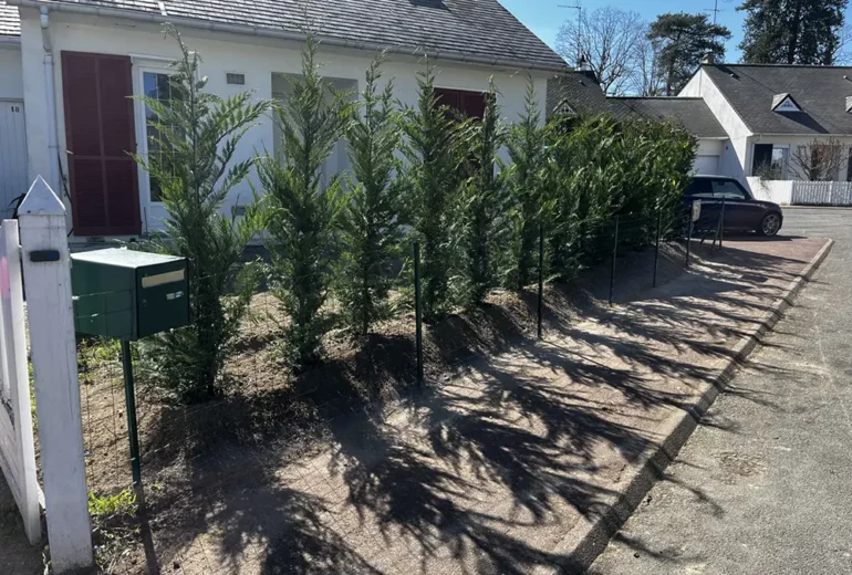 Arrachage d'une haie de thuyas, plantation de cyprès, pose de clôture et nettoyage de la terrasse à Verneuil-sur-Seine (78480) …